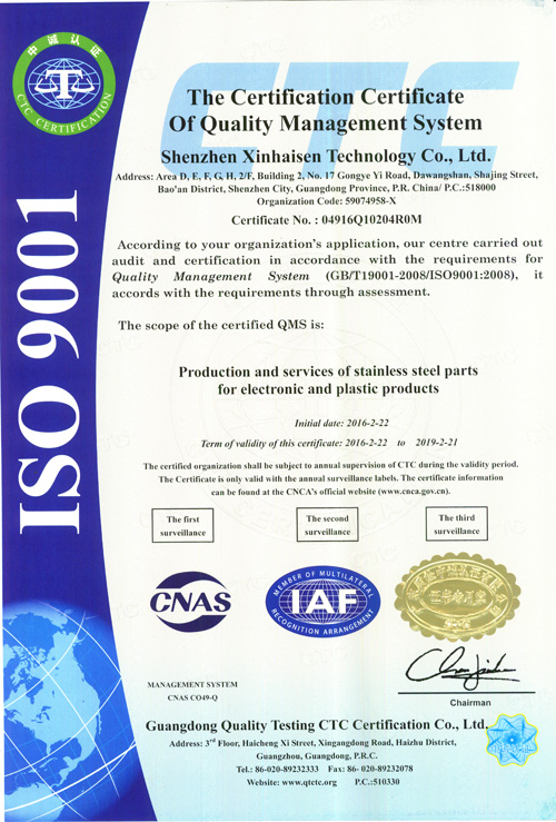 深圳市鑫海森科技有限公司成立于2006年,坐落于中國廣東省深圳市沙井鎮(zhèn),地理位置優(yōu)越,對(duì)于我司原物料采購及協(xié)作加工有無法比擬的迅速性和高品質(zhì)性。 我司主要進(jìn)行精密五金件的加工,產(chǎn)品涉及的范圍相當(dāng)廣泛,涵蓋了通訊、聲學(xué)、光學(xué)、醫(yī)療、安防、機(jī)械、航空、陸運(yùn)工具、家電等等領(lǐng)域。本公司目前產(chǎn)能1000^2全自動(dòng)生產(chǎn)線6條。加工厚度從0.02mm-1.5mm產(chǎn)品的精度可以做到... 【查看詳情】